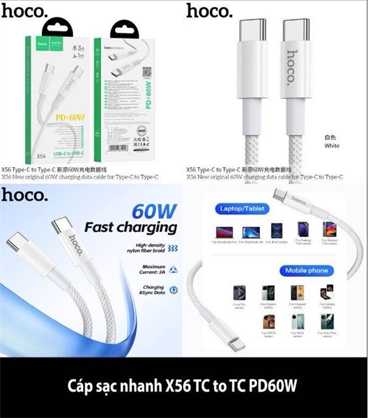 CÁP SẠC NHANH 60W HOCO X56 TYPE-C TO TYPE-C DÂY DÙ 1M