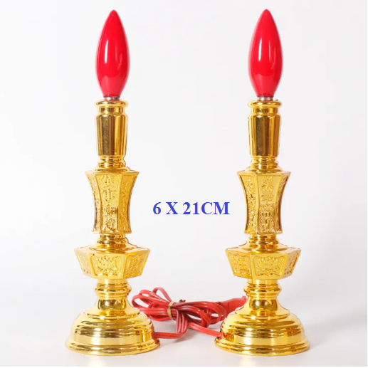 Cặp Đèn Thờ Đế Vàng Bóng Đỏ Dùng Điện Loại Cao Trang Trí Bàn Thờ Gia Tiên 6x21cm (Trung)